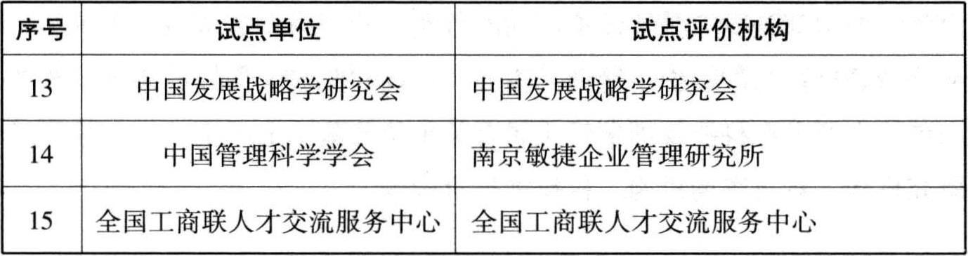 2014年7月,科技部国家科技奖励工作办公室下发《关于开展二期科技成果评价试点工作的实施意见》(国科奖字〔2014〕28号),工信部科技司、科技部农村中心、湖南省科技厅等单位和机构被列为科技成果评价试点单位和试点机构(见表3-3)。此次试点工作要求在试点范围内不再开展科技成果鉴定,全面实施科技成果评价(涉及国家秘密、国家安全、公共安全等国家重大利益的除外)。明确科技成果评价报告可用于科技成果登记和推荐科技奖励的佐证材料,积极推动科技成果评价报告在促进科技成果转化过程中的有效使用。