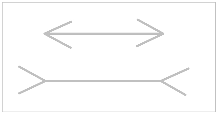 很多人第一眼会觉得下面的线段更长。但如果你拿尺子量一下,会发现它们实际上一样长。这张图叫缪勒莱耶错觉图。为什么我们会产生这种错觉呢?