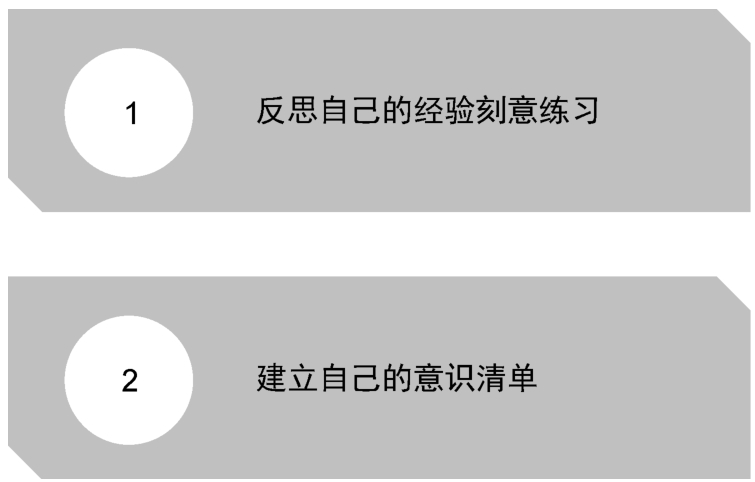 我们可以通过经验的积累和传承复用别人的经验,所以增强意识的第二种方法是主动建立自己的意识清单,把别人的经验放进自己的意识清单中。