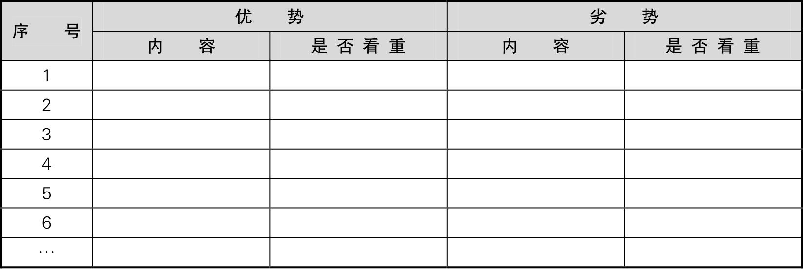 画一个 N 行×5列的优劣势表格,如表2-1所示。