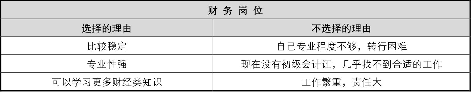 表2-2 “是否要尽快参加工作”的优劣势表格