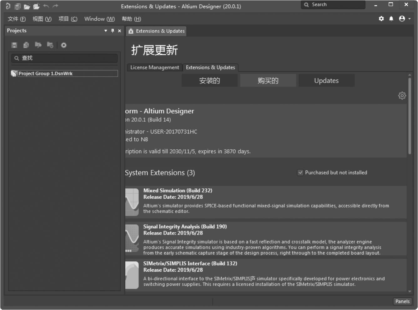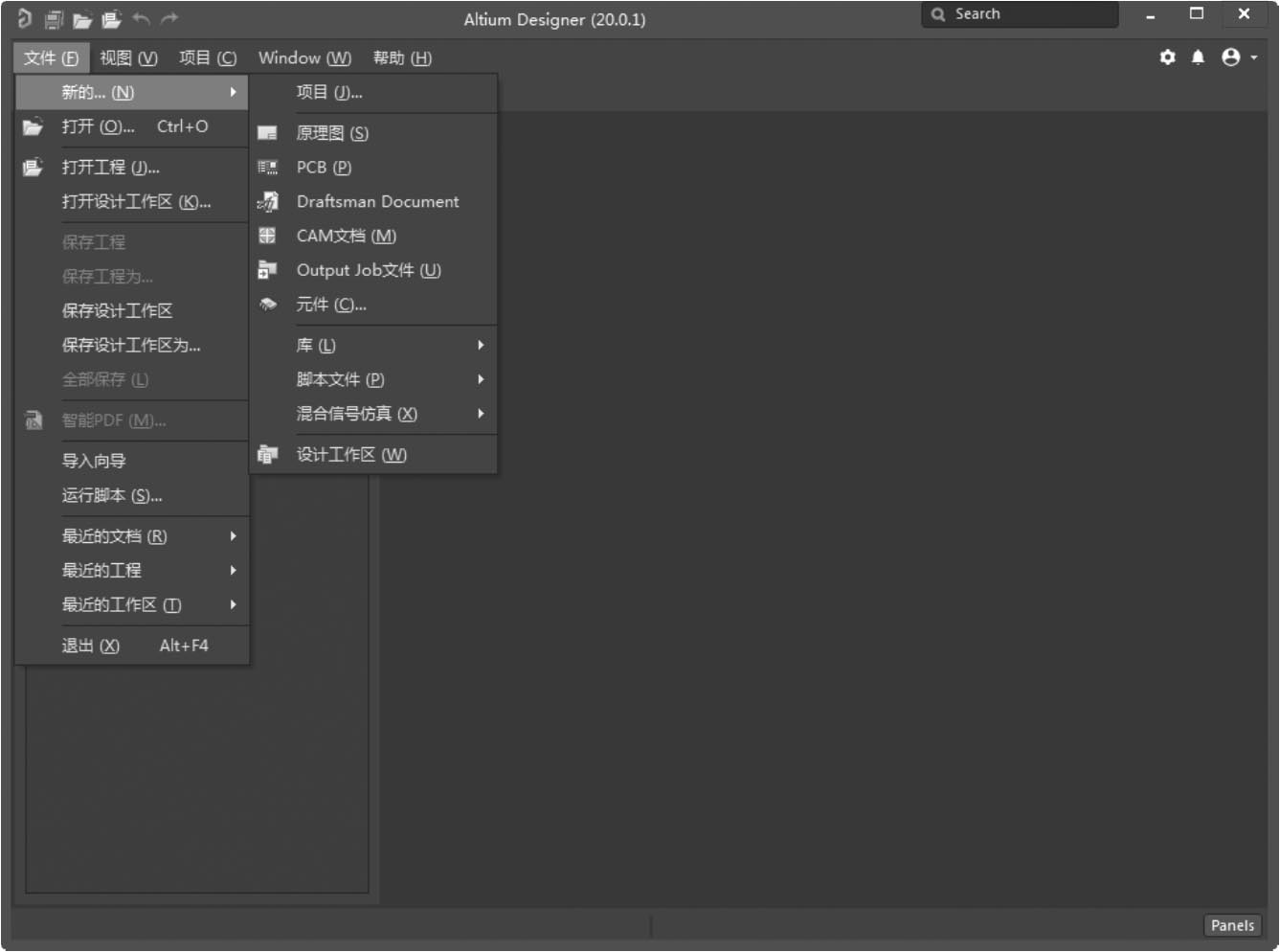 启动Altium Designer 20,弹出如图2-2所示的Altium Designer 20集成开发环境窗口。