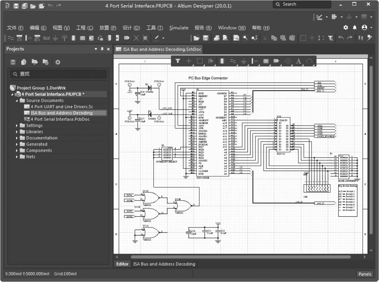 在打开一个电路原理图文件或创建一个新的电路原理图文件的同时,Altium Designer 20的原理图编辑器将被启动,如图2-13所示。下面介绍原理图编辑器的主要组成部分。
