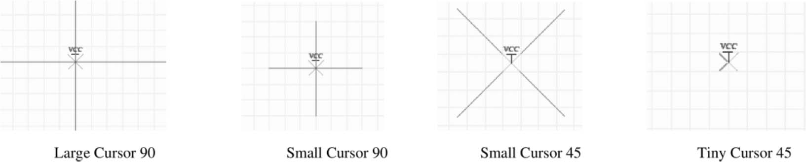 在图形编辑界面中,可以对光标进行设置,包括光标在绘图时、放置元器件时、放置导线时的形状。