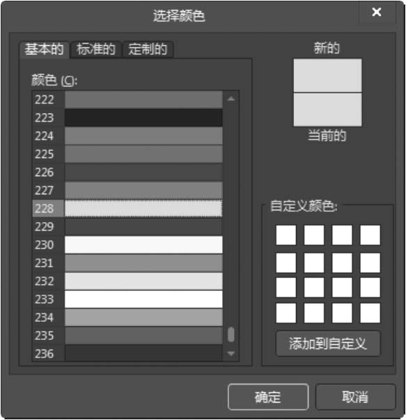 “颜色选项”选项组用于设置选中对象的颜色。单击“选择”右边的颜色显示框,系统将弹出如图2-45所示的“选择颜色”对话框,在该对话框中可以设置选中对象的颜色。