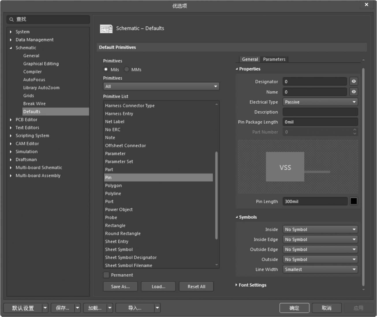 如果在Pin对应的基本信息中修改相关参数,那么在电路原理图上绘制管脚时,默认的管脚属性就是修改过的管脚属性。Pin信息如图2-54所示。