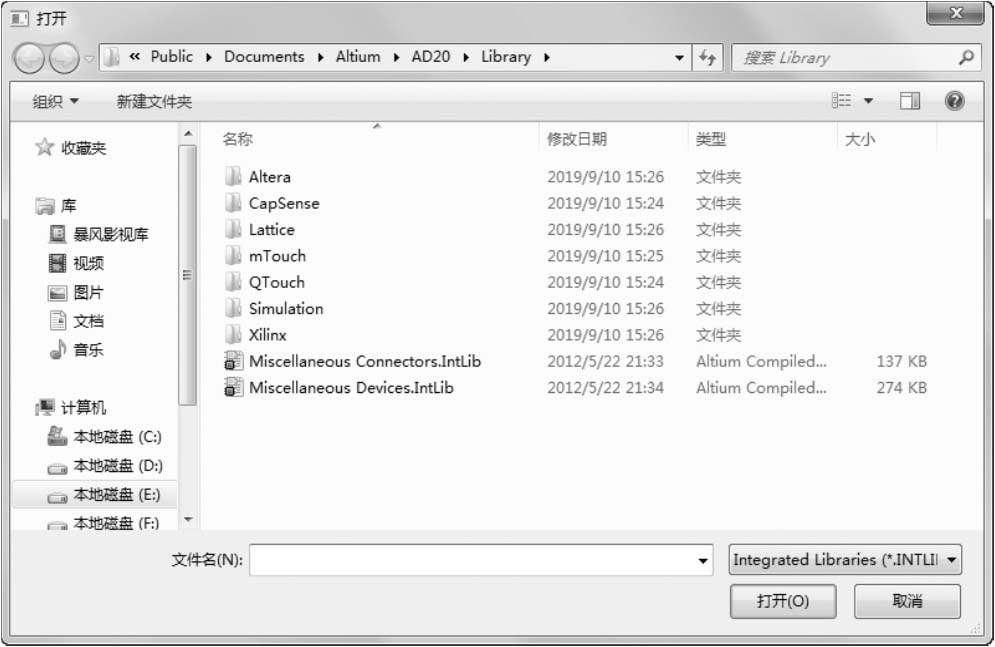 由于相比之前版本的软件,Altium Designer 20的元器件库的数量很少,无法支撑本书中电路原理图的绘制,因此本书配套的电子资源附带大量元器件库,用于电路原理图中元器件的放置与查找。可以利用步骤(2)中提到的