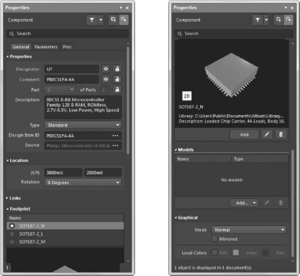 (3)使用Components面板中的过滤器快速定位需要的元器件,利用默认通配符*列出当前库中的所有元器件。也可以在过滤器栏输入P80C51FA-4N直接找到P80C51FA-4N元器件。