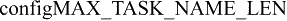 ● configMAX_TASK_NAME_LEN:当创建一个任务,能够给予描述任务名称的最大容许长度。这个长度指定符号数目,包括NULL终止字节。