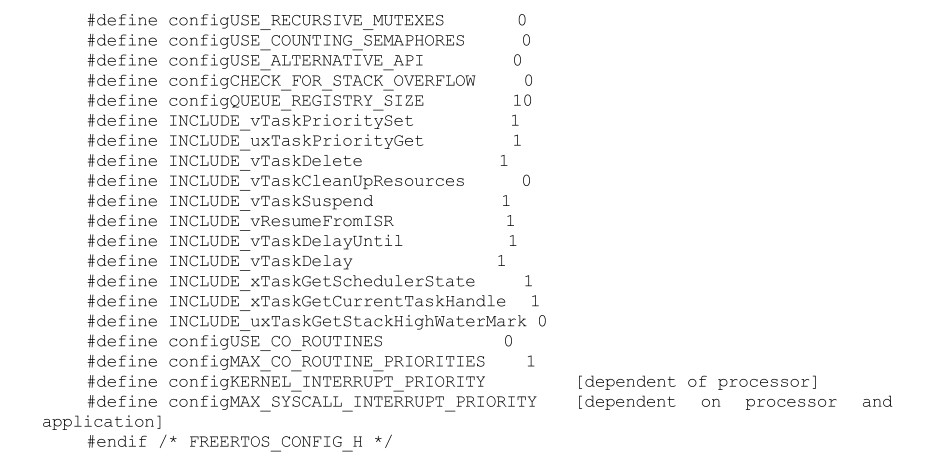 ● configMAX_SYSCALL_INTERRUPT_PRIORITY:一般PIC32和Cortex-M3接口中可用。其他接口将很快更新。