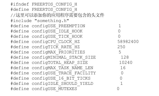 FreeRTOS 允许一定数量的参数存在,使得 FreeRTOS 内核可以剪裁来更加适合具体的应用程序。这些参数位于FreeRTOSConfig.h文件中。每一个包含FreeRTOS源代码演示程序,都有它自己的FreeRTOSConfig.h文件。典型的FreeRTOSConfig.h文件示例如下:
