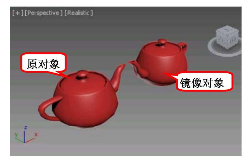2选中茶壶,单击主工具栏上的Mirror Selected Objects(镜像所选择物体)按钮