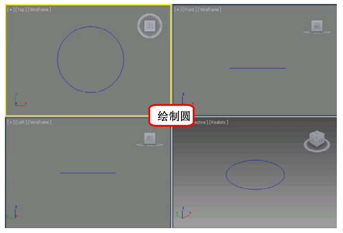 2单击Create(创建)命令面板中的Circle(圆)按钮,在Top(顶)视图中创建半径为12的圆,如图3-22所示。