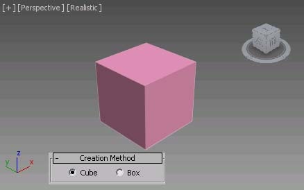 (4)如果要创建正方体,最简单的办法就是选择右侧Creation Method (创建方式)中的Cube(立方体),然后在视图中拖动鼠标,即可创建出立方体来,如图3-2所示。