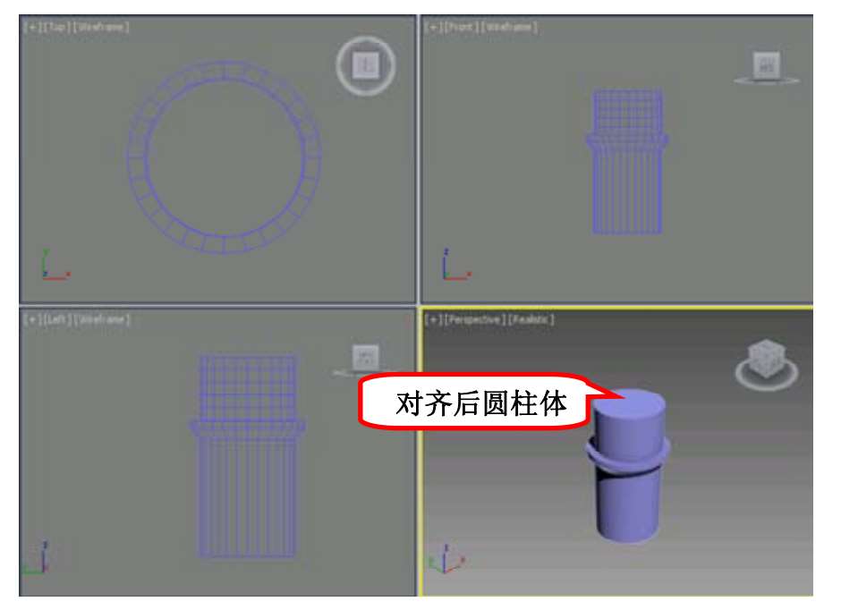 6选择Modify(修改)命令面板,并将其Parameters(参数)卷展栏中的Smooth(平滑)复选框取消选中。单击工具栏中的Align(对齐)按钮