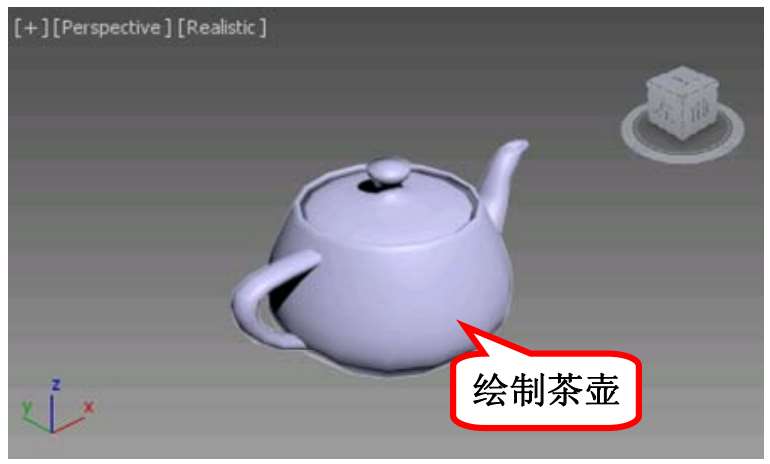 (1)重置系统。按照上述方法,在Top(顶)视图创建一个茶壶。