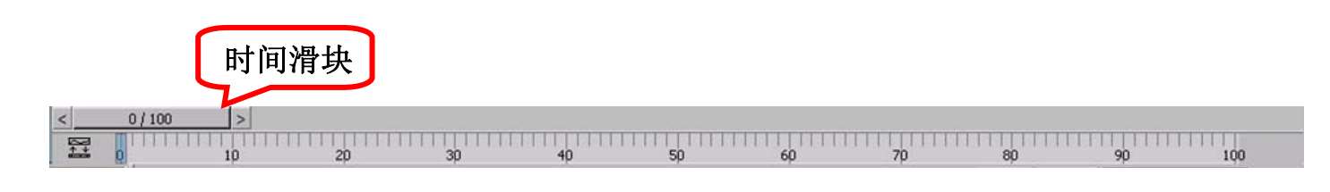 时间滑块主要用在动画制作中,可以在每一帧设置不同的物体状态,然后按照时间的先后顺序播放,这就是动画的基本原理。时间滑块就是用户用来调整某一帧的状态时的工具,如图1-15所示。