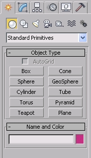 :Geometry按钮可以生成标准几何体、扩展几何体、合成物体、粒子系统、网格面片、NURBS曲面、动力学物体等。