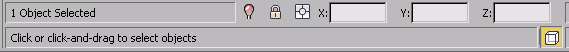 信息提示栏给出了目前操作的状态。其中X、Y、Z文本框分别表示当前游标在当前窗口中的具体坐标位置,读者可移动游标观看文本框的变化。提示区给出了目前操作工具的扩展描述及使用方法。如当用户选中Select and Uniform Scale(选择并均匀缩放)按钮