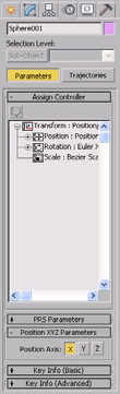 通过Motion(运动)命令面板可以控制被选择物体的运动轨迹,还可以为它指定各种动画控制器,同时对各关键点的信息进行编辑操作,如图1-13所示。Motion(运动)命令面板包括两部分。