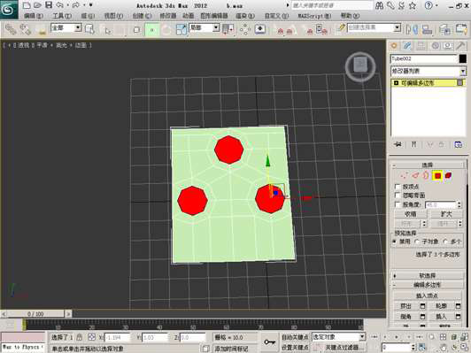 02 切换到面级别,选择新产生的三个面。在修改命令面板中单击
