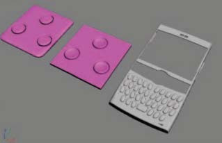 文件中手机模型的面不一定都是四边形结构,在平面上这不是主要的问题。给制作好的手机模型添加贴图需要两天时间。如果时间足够的话,我将把所有的面都制作成四边形。图4.24所示的是对使用此种技术所制作的模型进行渲染的效果。