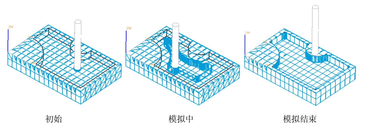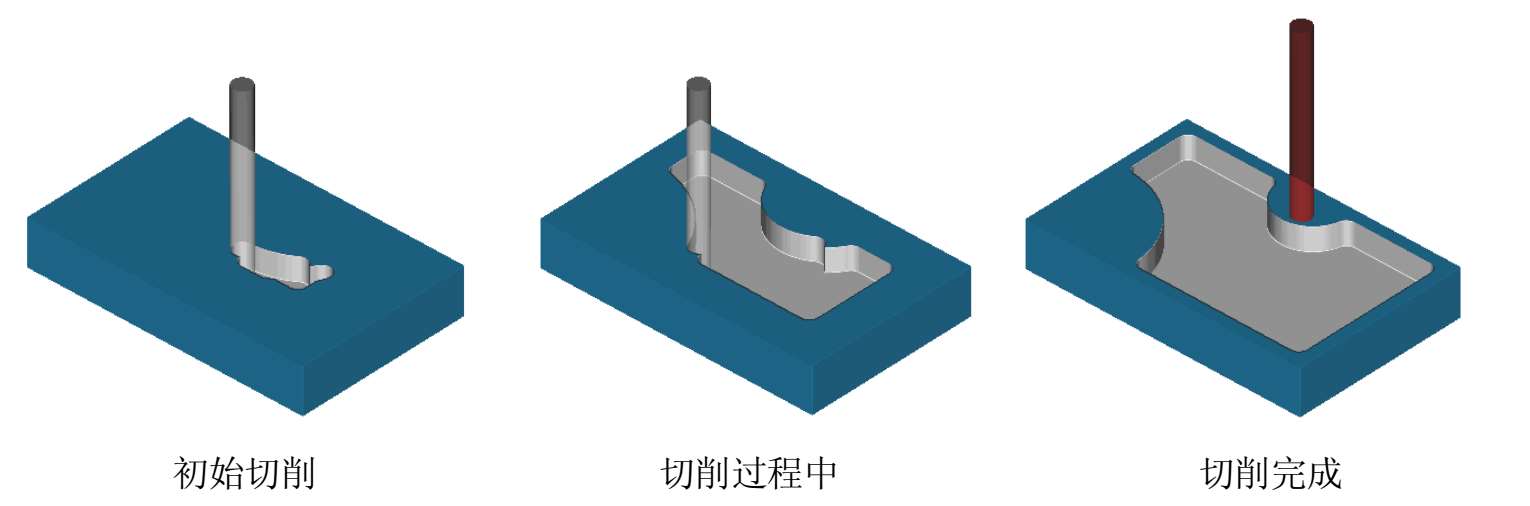 3D状态是三维实体以IPW(处理中的工件)的形式来显示刀具切削过程,其模拟过程非常逼真。3D状态模拟的过程及结果如图1-126所示。