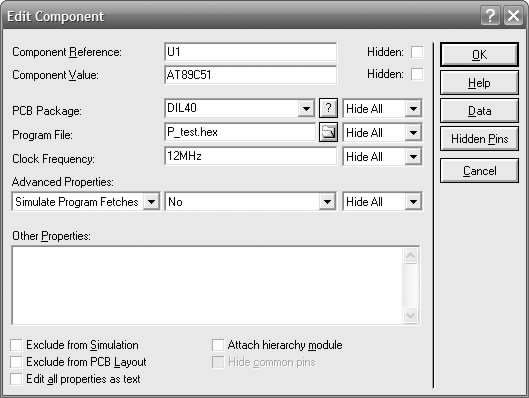 在原理图中,双击AT89C51单片机,将弹出“Edit Component”对话框,选择“Program File”栏,单击