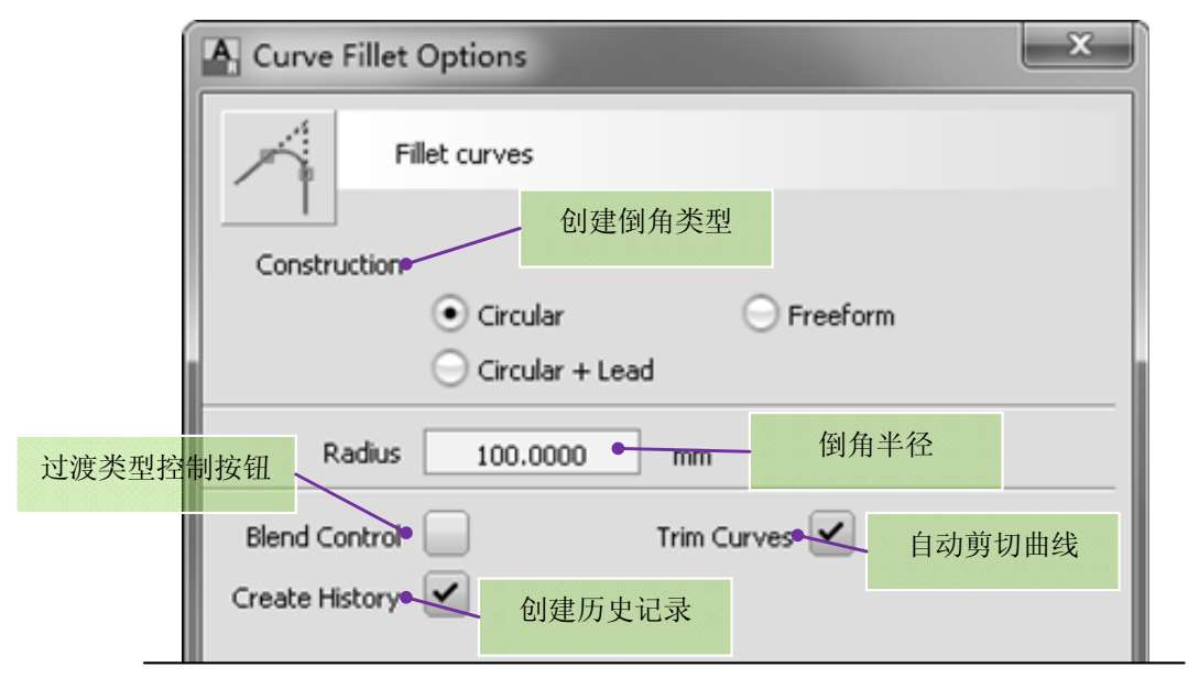 图3-24 曲线倒角工具选项框