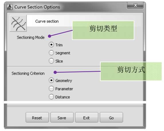 曲线剪切工具选项框