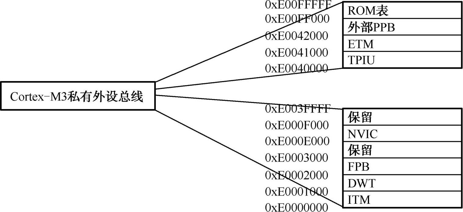 图 1-4 Cortex-M3 的私有外设总线的内存映射图