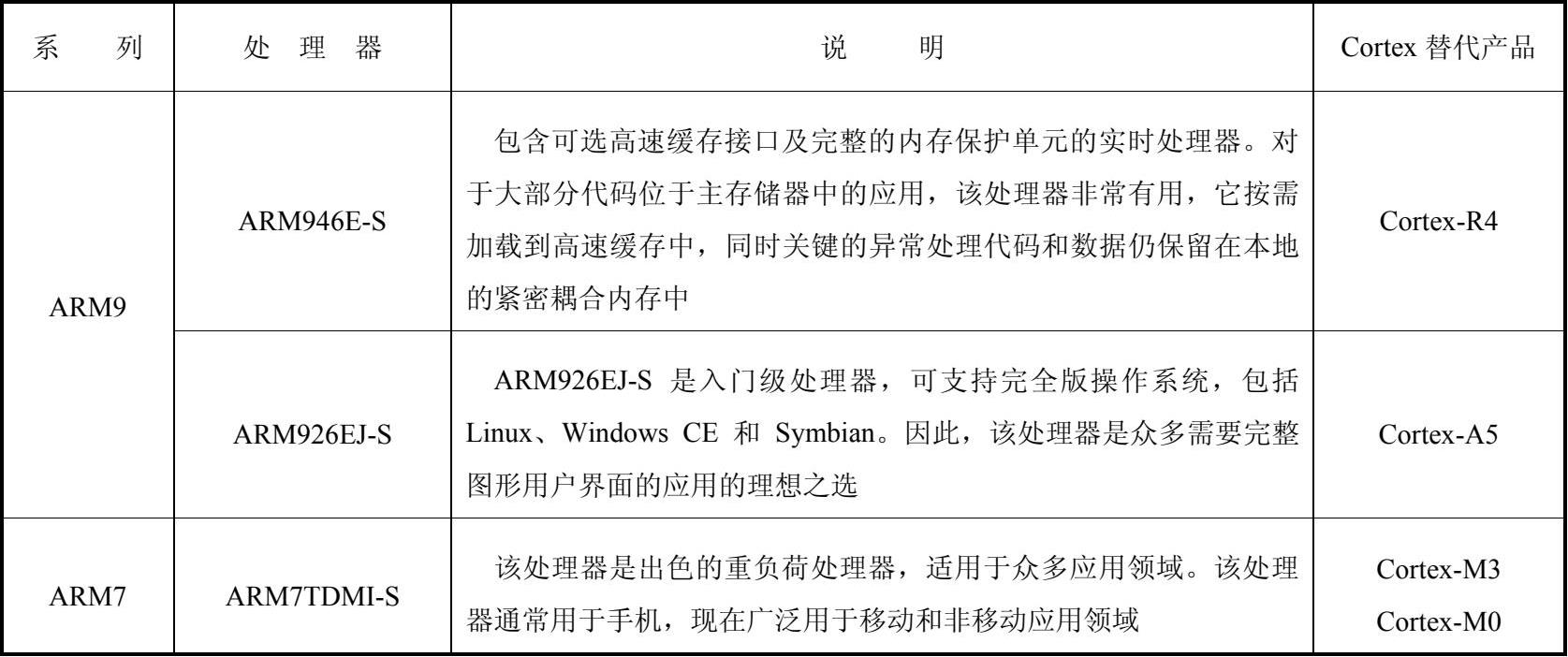 表 1-2 Cortex-M0/M3 与ARM7/9/11 的替代关系