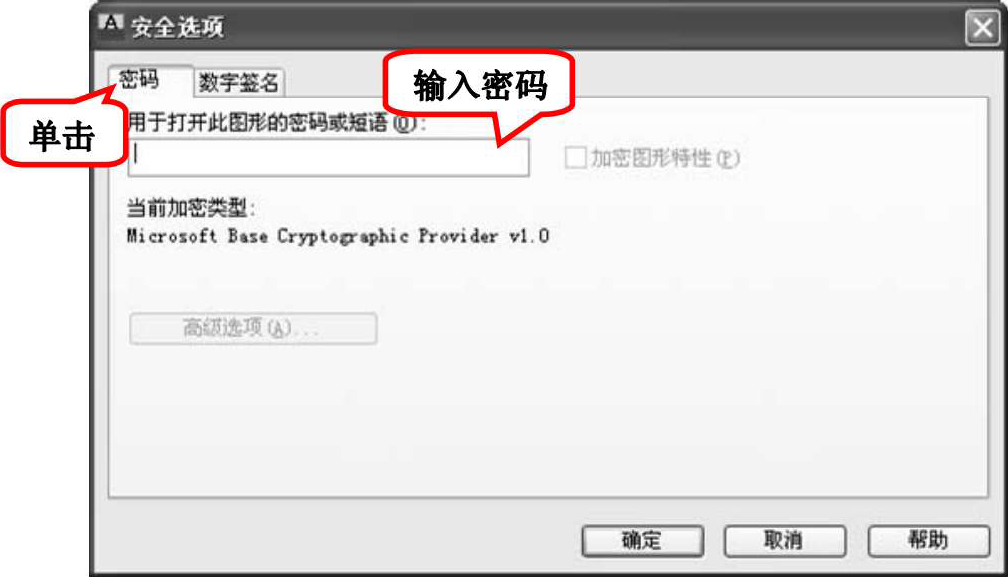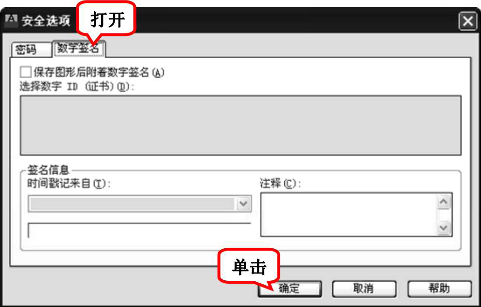 (1)“保存图形后附加数字签名”复选框:保存图形时为图形附加数字签名。