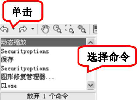 AutoCAD 2013可以一次执行多重放弃和重做操作。单击“标准”工具栏中的“放弃”按钮 或“重做”按钮 后面的小三角,可以选择要放弃或重做的操作,如图1-41所示。