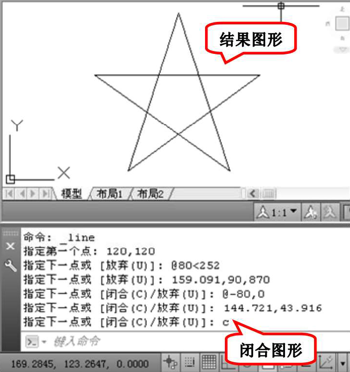 (4)用相似方法输入五角星的各个顶点。如图2-5所示。