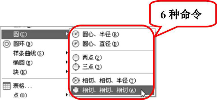 ●菜单栏:选择菜单栏中的“绘图”→“圆”命令。