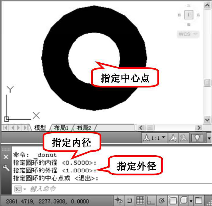 ●菜单栏:选择菜单栏中的“绘图”→“圆环”命令。