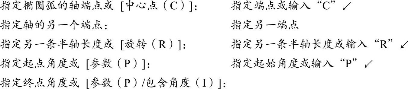 ”功能相同。其中第一条轴的角度确定了椭圆弧的角度。第一条轴既可定义椭圆弧长轴,也可定义其短轴。选择该项,系统命令行中继续提示如下。