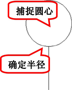 执行“圆”命令,打开“捕捉”模式,捕捉竖直直线上一点作为圆心时,将鼠标放置到竖直线顶点,沿绿色点线向上捕捉圆心,如图3-18所示。