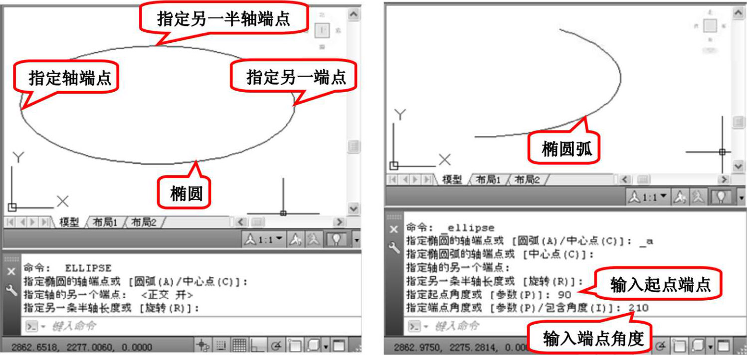 (2)单击“绘图”工具栏中的“椭圆弧”按钮