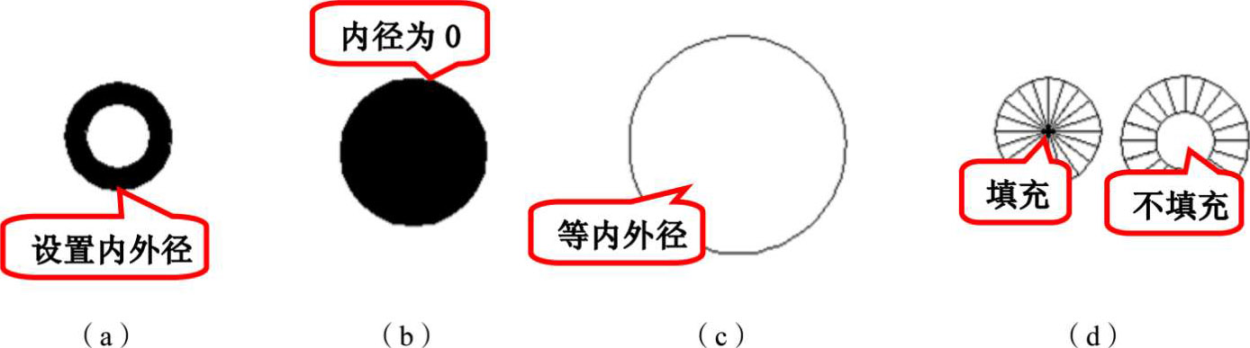 (2)若指定内径为零,则画出实心填充圆,如图3-21(b)所示。