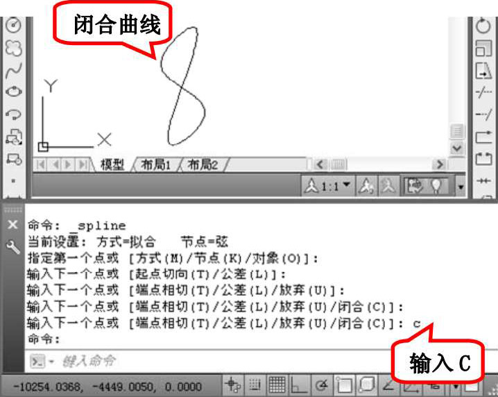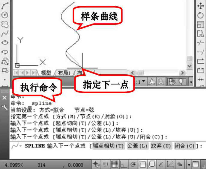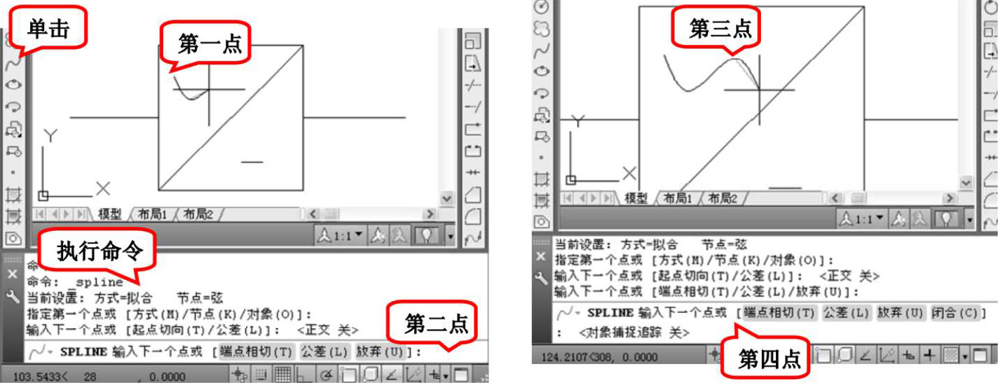 (3)单击“绘图”工具栏中的“样条曲线”按钮