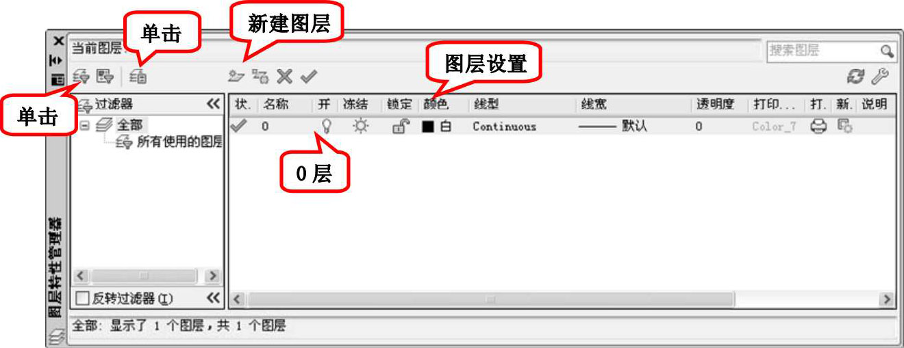 ① 单击“图层”工具栏中的“图层特性管理器”按钮