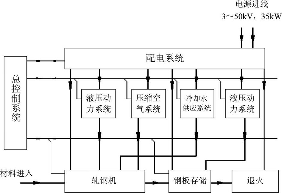 系统图对布图有很高的要求,强调布局清晰,以利于识别过程和信息的流向。基本的流向应该是自左至右或者自上至下,如图1-1所示。只有在某些特殊情况下方可例外,例如用于表达非电工程中的电气控制系统或者电气控制设备的系统图和框图,可以根据非电工程的流程图绘制,但是图中的控制信号应该与工程的流向相互垂直,以利识别,如图1-2所示。