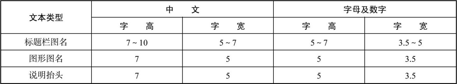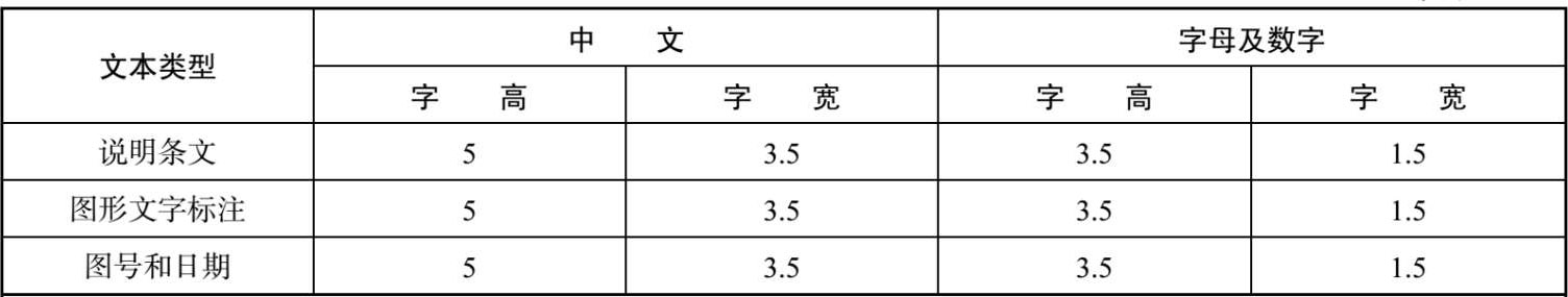 (1)常用的文本尺寸宜在下列尺寸中选择:2.5,3.5,5,7,10,14,20。(单位:mm)