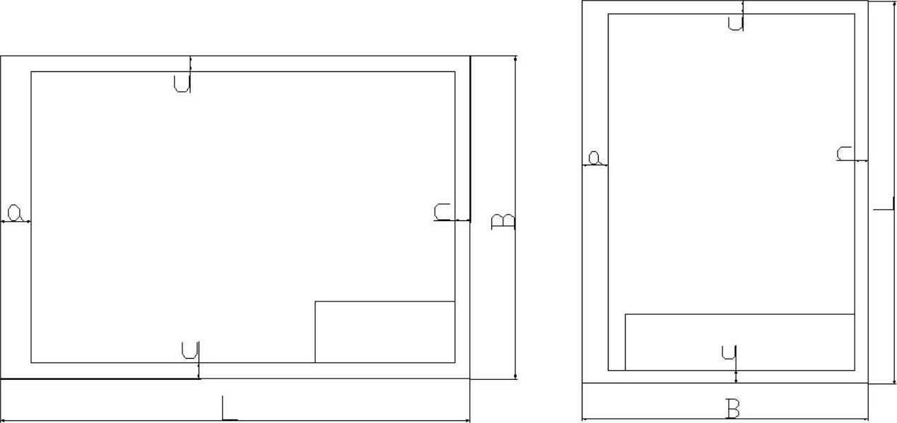(1)图框尺寸如表1-2所示。在电气图中,确定图框线的尺寸有两个依据:一是图纸是否需要装订;二是图纸幅面的大小。需要装订时,装订的一边就要留出装订边。图1-6、图1-7分别为不留装订边的图框、留装订边的图框。右下角矩形区域为标题栏位置。