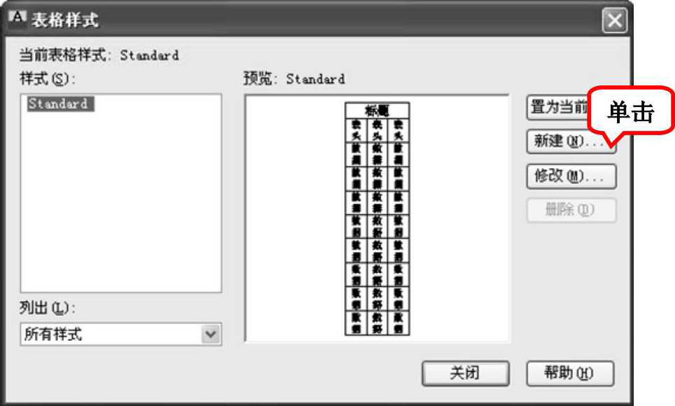 (2)打开对话框的菜单命令。这种类型的菜单命令后面带有省略号。例如,选择菜单栏中的“格式”→“表格样式”命令,如图2-3所示,系统就会打开“表格样式”对话框,如图2-4所示。