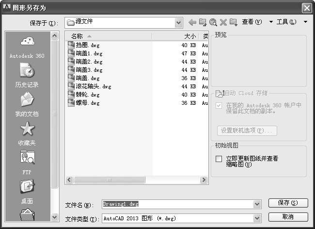 执行上述命令后,打开“图形另存为”对话框,如图1-26所示,系统用新的文件名保存,并为当前图形更名。