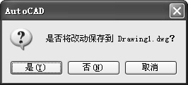 执行上述命令后,若用户对图形所做的修改尚未保存,则会打开如图1-27所示的系统警告对话框。单击“是”按钮,系统将保存文件,然后退出;单击“否”按钮,系统将不保存文件。若用户对图形所做的修改已经保存,则直接退出。