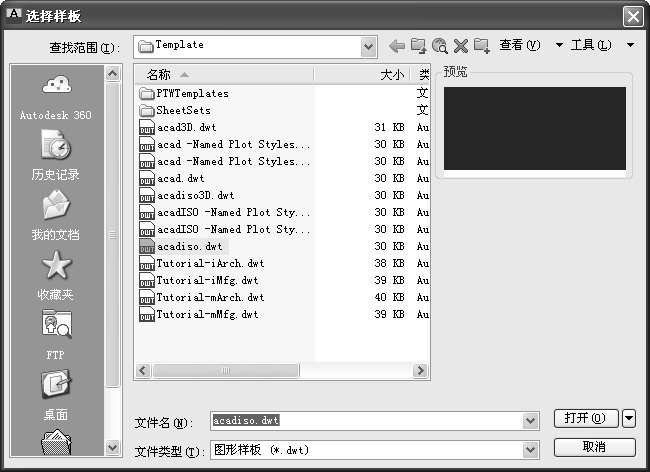 执行上述命令后,系统打开如图1-23所示的“选择样板”对话框。